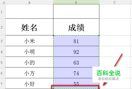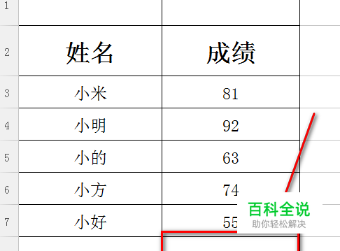 如图,我准备了一张小组成员的成绩表。 我们要做的是计算出图中红框里的总和是多少,这就要用到 sum函数。