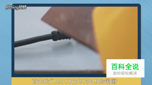用小刀把坏的耳机给割断。