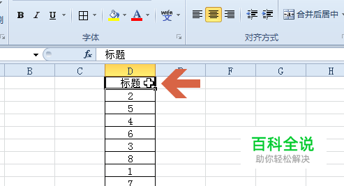 在表格中第一个单元格的上方单元格中随便打出字符,选中该单元格。