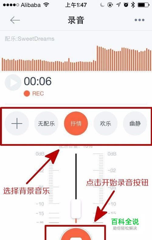 开始录音,可选择添加的背景音乐,对着手机麦克风说出自己想说的话,或唱出自己喜欢的歌,将自己最拿手的故事。