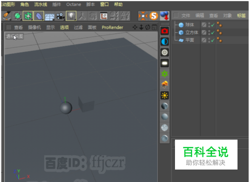 首先搭建一个小场景 添加了一个平面作为地面,平面大小5000*5000左右;其余的立方体和圆球都选用默认参数。将圆球与立方体置于平面之上。 场景搭建完成。