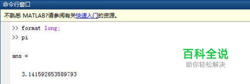 笔者以MATLAB R2016b为例,其它版本操作相似,首先是未使用format命令下π的近似值;
