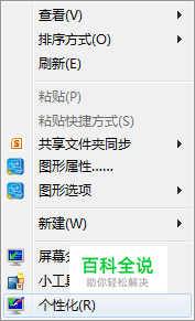 右击桌面,选择“个性化”,如图所示: