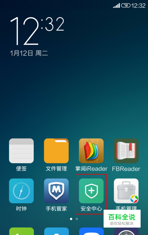 在手机桌面点击“安全中心”进入。