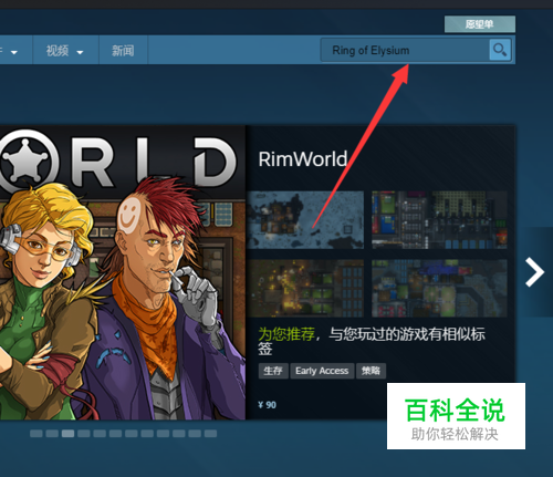 2、打开我们STEAM市场搜索“Ring of Elysium”