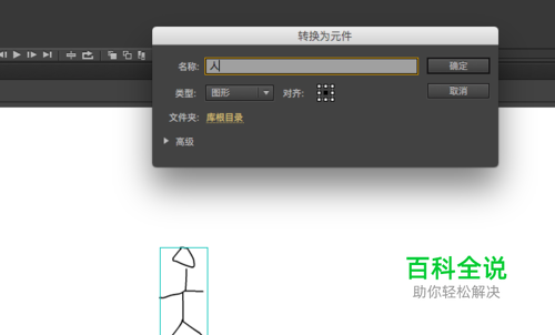 选中小人的头和脖子,姑且称之为脖子吧,按F8转化为图形元件,起名为头