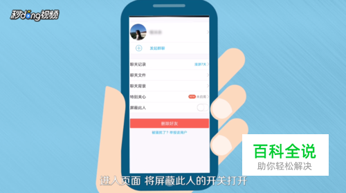 进入页面,将“屏蔽此人”的开关打开,回到聊天界面,开始投掷骰子。