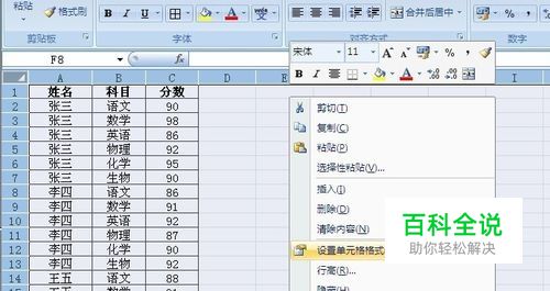 全选工作表,在工作表中任意位置右击鼠标,选择“设置单元格格式”
