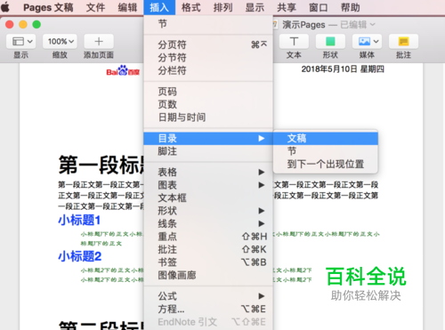MAC苹果电脑Pages文稿怎样添加目录?