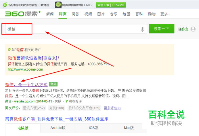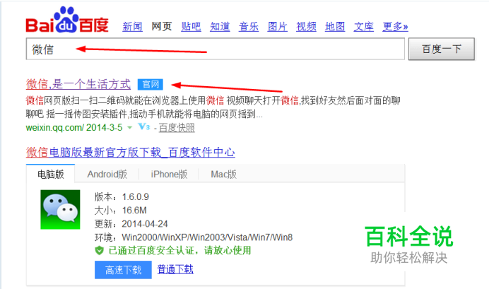 第一步,我们先去网上找到微信在哪里!两个搜索器,你都 可以找到;