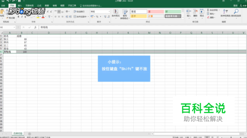 将鼠标放在要移动的行的上方,按住键盘的“Shift”键不放。