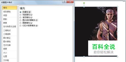 右键选择图片,选择设置图片格式,调出对话框,此时我们会发现没有可以修改图片透明度的选项