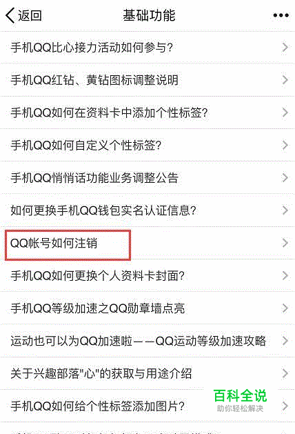 设置-关于QQ与帮助-帮助-基础功能-QQ账号如何注销-点击此处”