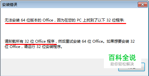版本的office2007或者是office2003卸载掉,结果却显示无法安装64位