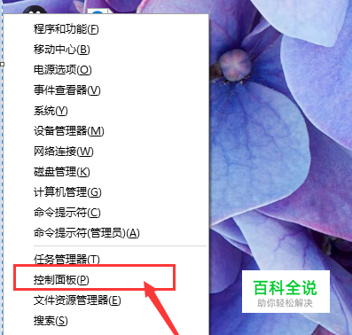 首先,请大家在Win10桌面上按下 Windows徽标键+R键,然后在左下角弹出的菜单中点击“ 控制面板”选项,打开Win10系统中的控制面板主页面。