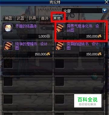 打开克伦特的商店,然后选择“其他”选项卡,选择“异界灵魂净化书”,左键选择购买。