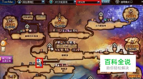 进入地下城游戏后,点击键盘上的“N”键,进入地图模式,NPC选项选择kelu克伦特。