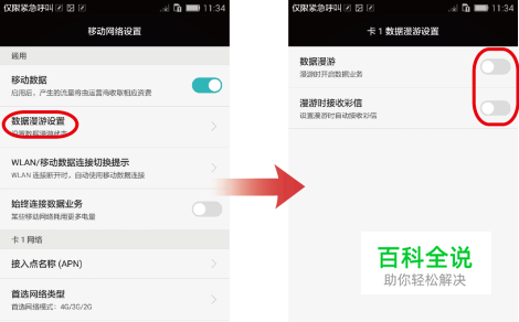 此时可根据提示进行相关设置: 点击” 数据漫游设置”,然后点击相应开关可设置漫游时是否开启数据业务或自动接收彩信。