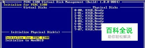 创建磁盘,首先需要将磁盘初始化。光标移至Initialize Physical Disk(s)选回车 注:如报错就先Delete Virtual Disk(S)