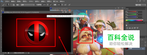 选好了素材,小鱼现在将死侍的这个标志当作面具,给托比昂戴上(就那个老头),一般的方法都是扣图,破坏原素材效果也不是很好,现在小鱼用蒙版法来做。