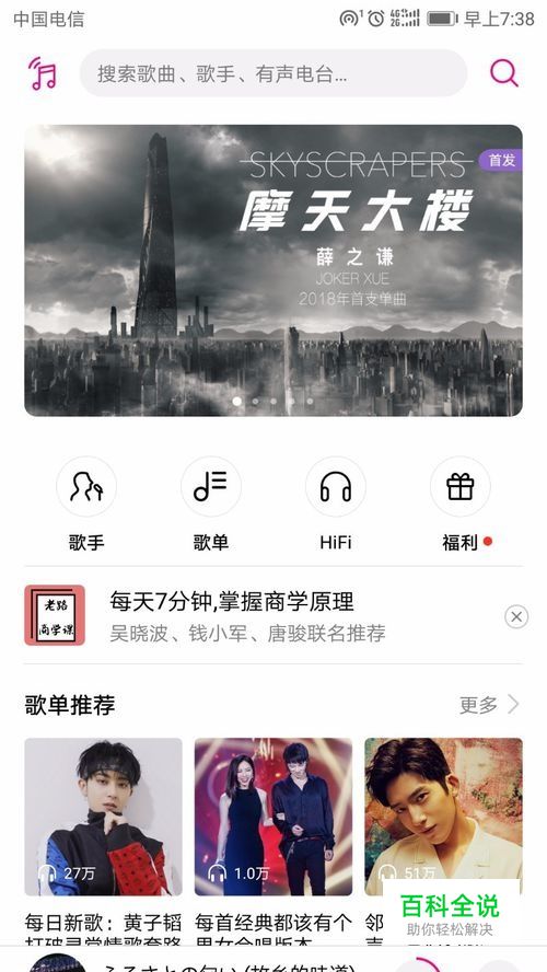 因为华为音乐还不错,我就没下载其他音乐播放器。进入主页之后,我们可以看到最新推送的音乐。