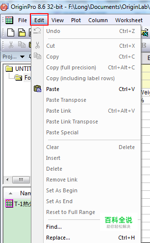 打开Origin,点击“Edit”,我们可以看到好多选项。下面给大家简单讲解一下。