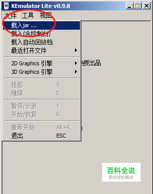 2、下载完之后,打开J2ME模拟器文件中的KEmulator.EXE程序,打开后点击文件再点击载入QQ2007.jar。