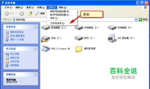 首先打开我的电脑,在菜单栏里 找到工具---文件夹选项(按快捷键alt+t,再按o)