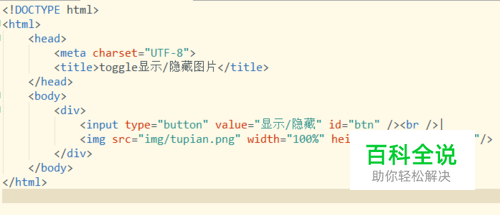在按钮的点击事件中,通过id获取img元素,再调用toggle()方法实现对该图片显示/隐藏。