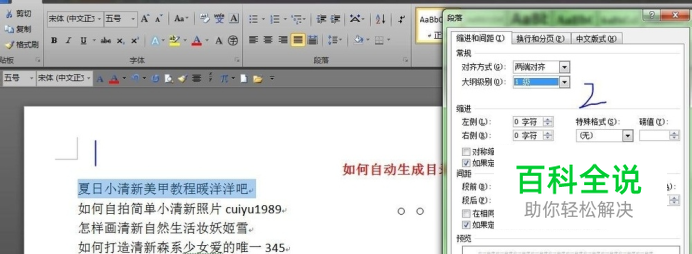 1.生成目录前先对要生成目录的文字设置大纲级别,一级目录设置为大纲级别1级,先选定文字,再打开段落对话框,设置大纲级别一级,然后点击确定,如图
