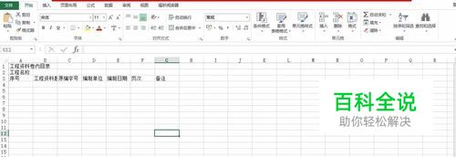 在EXCEL表格中分别输入 文字内容 (序号、 工程资料、 题名 、原编字号、编制单位、 编制日期、 页次 、备注等)