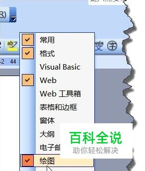 首先我们看一下WORD 2003中的操作。右击工具栏处的空白位置,在弹出的菜单中选择”绘图“