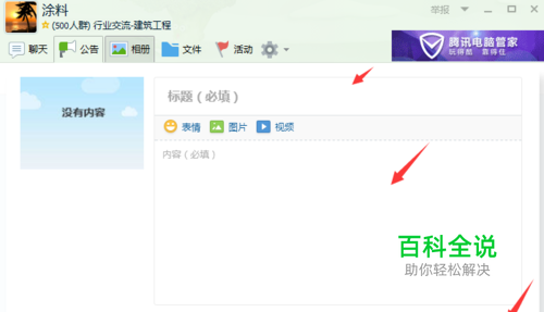 公告也一样,在群对话框上面菜单选择公告。然后点击发布新公告。最后填写标题和内容发布就可以了。