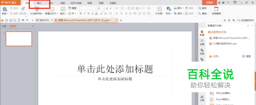 打开WPS幻灯片,选择插入。
