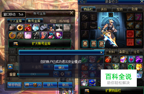 首先登录游戏, 这时提示了安全模式锁定, 点击解除锁定按钮 如图