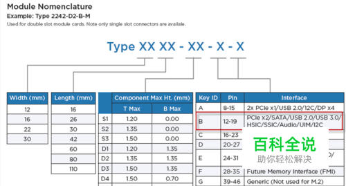 M.2 接口的 SSD 主要使用 key B (Socket 2) 和 key M(Socket 3) Key B 使用 SATA 总线和 PCI-E x2, key M 使用 PCI-E x4 下图为 key B 和 M 的接口外观。