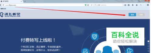 搜索“讯飞听见”,进入网站引导页,会员点击登录,新用户点击注册
