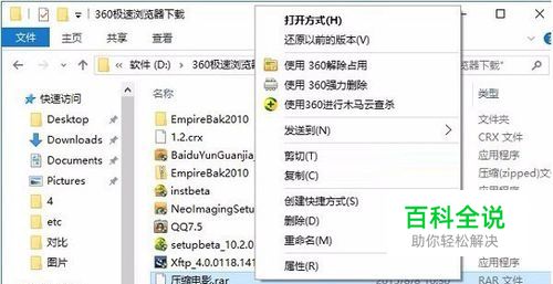 安装完成后,就可以去压缩或者解压文件或者文件夹了,现在就可以在文件上右键,选择压缩或者解压,从此开始Win10压缩与解压文件之旅了,如图所示。
