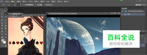 首先运行PS,然后在菜单打开自己想要使用的图片。我在这里随便拿两张!