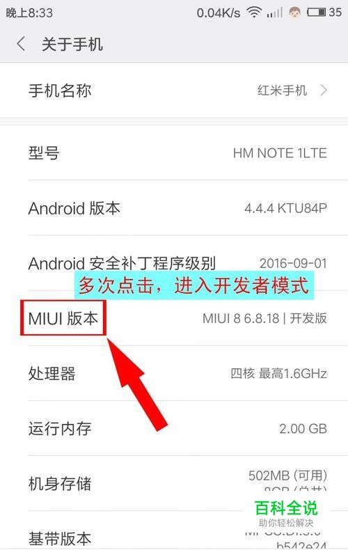 在"关于手机"里找到"MIUI版本",多次点击,进入开发者模式.