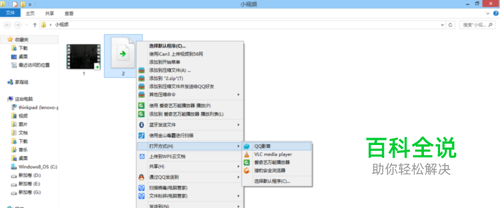 打开放置视频的文件夹,首先把要合成的视频排一下前后顺序,确定哪一个放在前面,哪一个放在后面。选择要放在前面的视频,用QQ影音播放。具体操作方法:选中一个视频,右击鼠标,在对话框中选择“打开方式”为“QQ影音”。