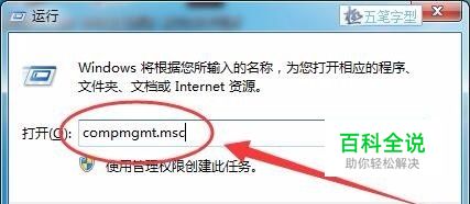 首先,打开计算机机管理窗口。 方法一:打开运行窗口,输入命令compmgmt.msc。