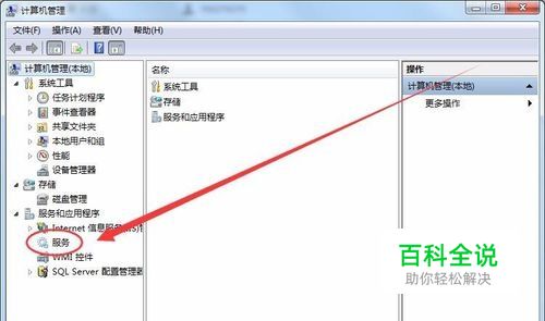 计算机管理窗口中,单击服务和应用程序选项,将其展开。
