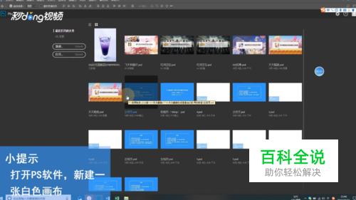 打开PS软件,新建一张蓝白色的背景图。