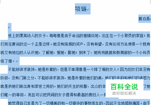 【Ctrl+A键选中整篇文档】 鼠标左键单击将光标定位在文档任意位置,同时按下快捷键Ctrl+A键快速选中整篇文档内容。