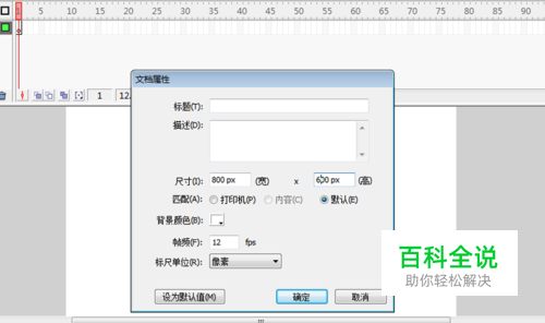 首先启动flash8,新建一文档,设置属性面板中的大小为800*600,帧频为12fps,背景颜色为白色。