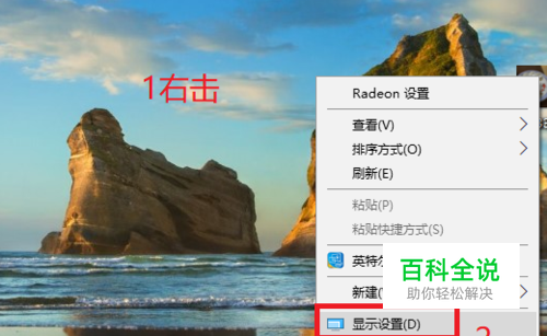 首先,打开电脑。在桌面上【右击】,选择【显示设置】。如图所示。
