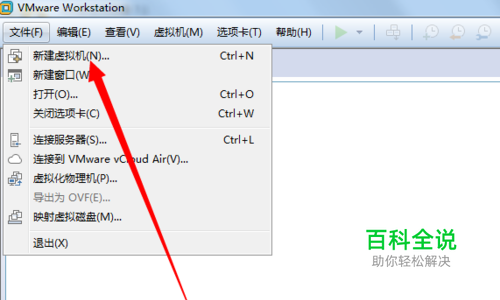 首先打开虚拟机,进入主界面,点击上方菜单栏处 【文件】选项,然后点击 【新建虚拟机】
