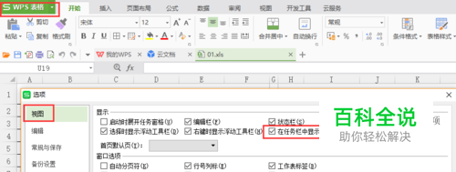 (4)分屏显示两个Excel表格:一般的Excel视图中有“并排比较”,可以方便对照看表,如果仍想分屏,同上述分屏显示两个CAD图的操作一样,首先要设置不让这两个Excel文件显示在一个窗口中,以WPS表格为例,点击左上角→选项→视图→勾选“在任务栏中显示所有窗口”,这时再打开Excel表格,就是单文件单窗口形式了,想单窗口显示时取消勾选即可。其余操作同上。