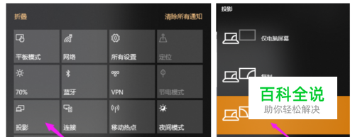 (1)以Win10为例,首先笔记本要设置分屏显示:投影→拓展,这时两个屏幕都出现桌面,并且鼠标可以在两个屏幕之间来回穿梭。